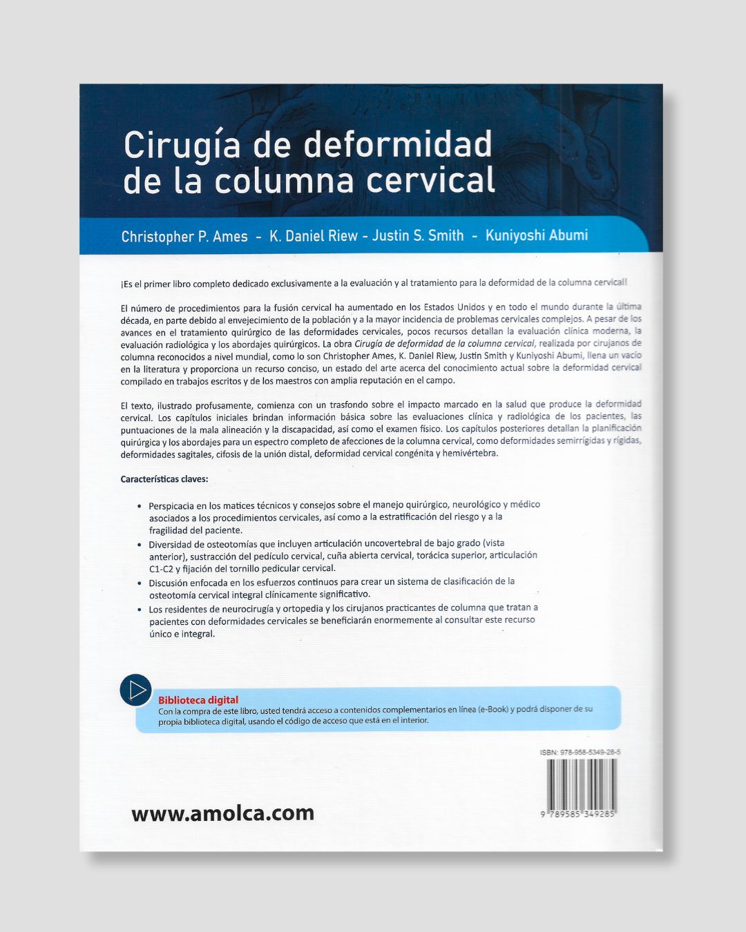 Los editores de esta obra —C. Ames, D. Riew, J. Smith y K. Abumi— son reconocidos neurocirujanos y cirujanos ortopédicos y especialistas en trastornos de columna que han reunido en este libro 24 capítulos y más de 130 imágenes e ilustraciones con la información más detallada acerca de los procedimientos de corrección de las desviaciones y deformidades de la columna cervical. Esta área de la cirugía ha estado rezagada con respecto a la investigación de procedimientos de otros tipos de deformidades, como la deformidad torácica y la lumbar; sin embargo, en Cirugía de deformidad de la columna cervical el lector podrá encontrar información muy reciente sobre los fundamentos y las técnicas de esta cirugía, desde lo más básico hasta lo más complejo. Entre la información contenida en la obra se destaca la evaluación de la alineación sagital global y de la columna cervical; los parámetros para la medición radiográfica, la evaluación de discapacidad y el examen físico; consideraciones sobre osteotomías (evaluación preoperatoria, técnicas quirúrgicas y posibles complicaciones de dichos procedimientos); y además un capítulo dedicado a la clasificación de la deformidad cervical. Todo residente de neurocirugía y de ortopedia, así como cualquier cirujano de la columna vertebral, podrá aprovechar la información que contiene este libro, pues es, de algún modo, un avance en el área el que los doctores hayan podido clasificar los tipos de procedimientos para esta discapacidad física.