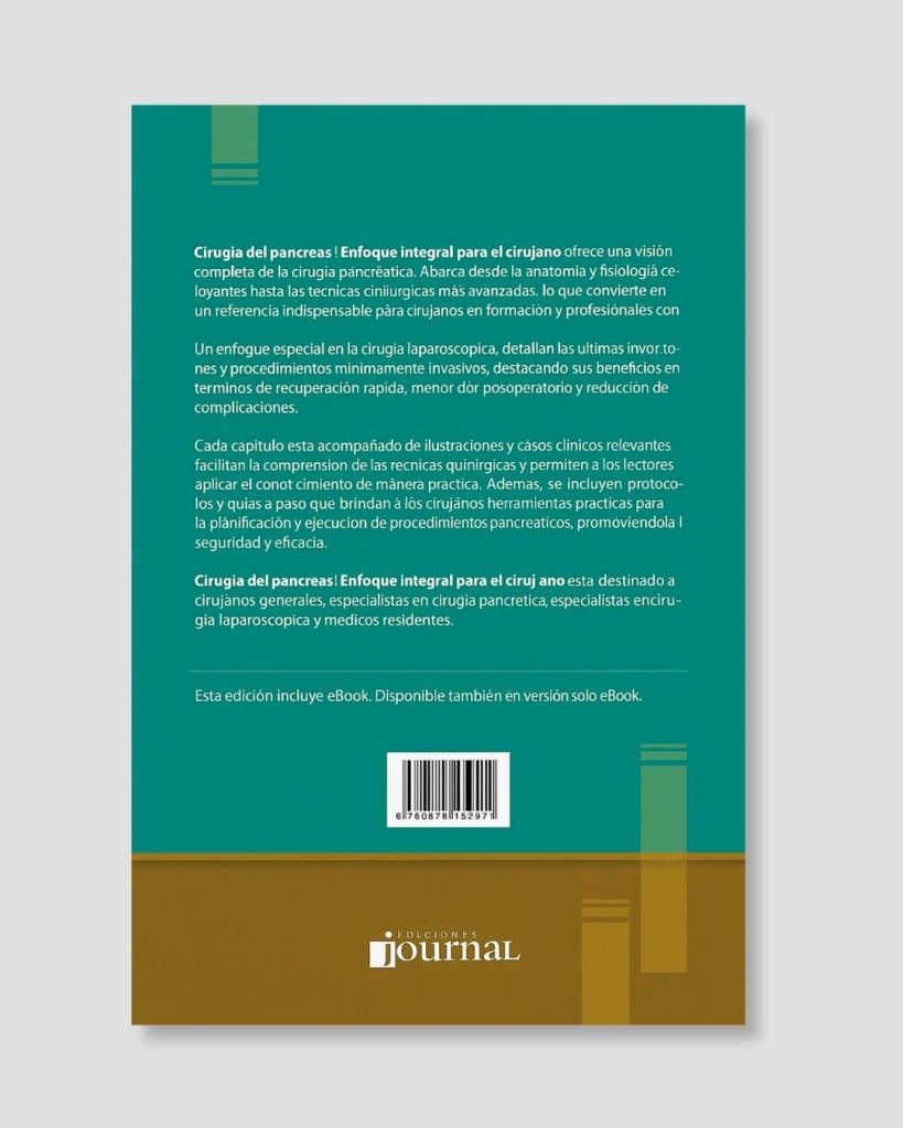 Cirugía del páncreas: Enfoque integral para el cirujano ofrece una visión completa de la cirugía pancreática. Abarca desde la anatomía y fisiología del páncreas hasta las técnicas quirúrgicas más avanzadas, lo que lo convierte en una referencia indispensable para cirujanos en formación y profesionales experimentados. Con un enfoque especial en la cirugía laparoscópica, se detallan las últimas innovaciones y procedimientos mínimamente invasivos, destacándose sus beneficios en términos de recuperación rápida, menor dolor posoperatorio y reducción de complicaciones. Cada capítulo está acompañado de ilustraciones y casos clínicos relevantes que facilitan la comprensión de las técnicas quirúrgicas y permiten a los lectores aplicar el conocimiento de manera práctica. Además, se incluyen protocolos y guías paso a paso que brindan a los cirujanos herramientas prácticas para la planificación y ejecución de procedimientos pancreáticos, promoviendo la seguridad y eficacia en el quirófano. Cirugía del páncreas: Enfoque integral para el cirujano está destinado a cirujanos generales, especialistas en cirugía pancreática, especialistas en cirugía laparoscópica avanzada y médicos residentes.
