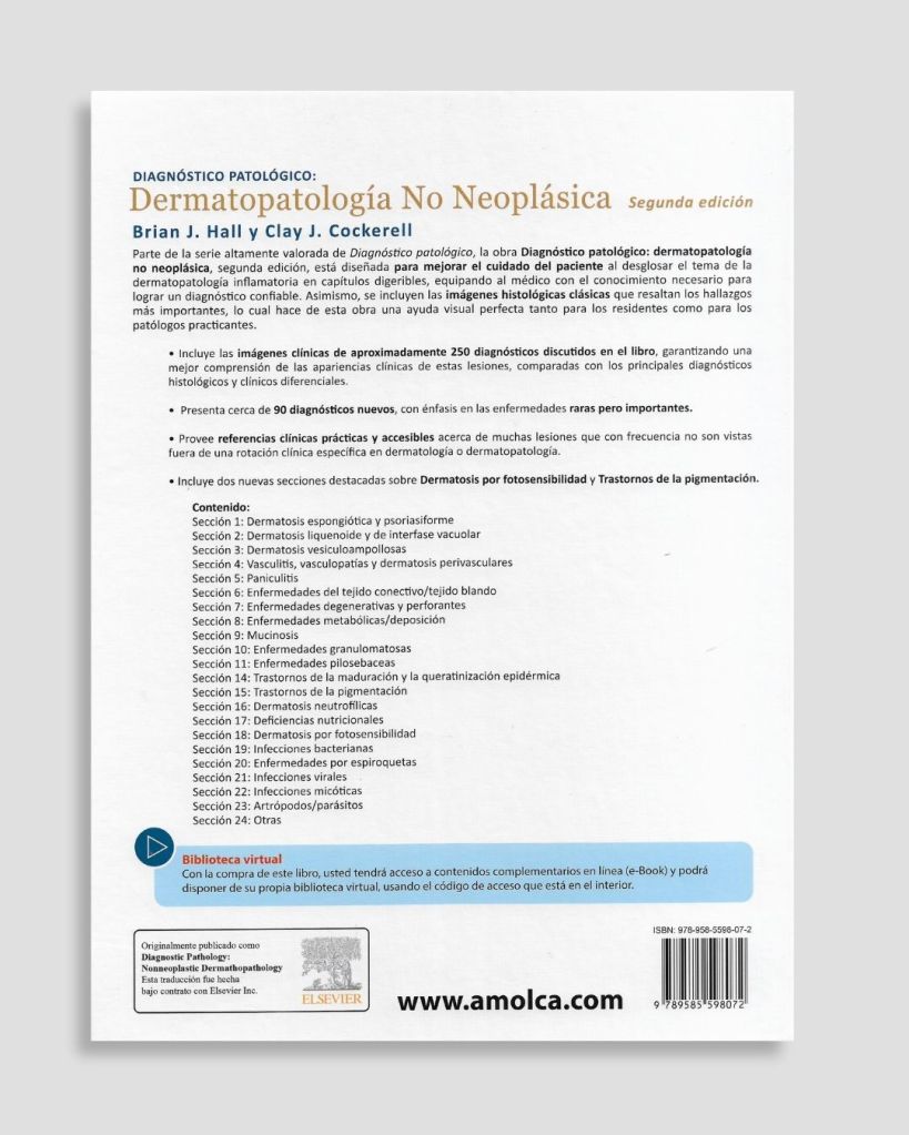 «Parte de la serie altamente valorada de Diagnóstico patológico: dermatopatología no neoplásica, segunda edición, está diseñada para mejorar el cuidado del paciente al desglosar el tema de la dermatopatología inflamatoria en capítulos digeribles, equipando al médico con el conocimiento necesario para lograr un diagnóstico confiable. Asimismo, se incluyen las imágenes histológicas clásicas que resaltan los hallazgos más importantes, lo cual hace de esta obra una ayuda visual perfecta tanto para los residentes como para los patólogos practicantes. ° Incluye las imágenes clínicas de aproximadamente 250 diagnósticos discutidos en el libro, garantizando una mejor comprensión de las apariencias clínicas de estas lesiones, comparadas con los principales diagnósticos histológicos y clínicos diferenciales. ° Presenta cerca de 90 diagnósticos nuevos, con énfasis en las enfermedades raras pero importantes. ° Provee referencias clínicas prácticas y accesibles acerca de muchas lesiones que con frecuencia no son vistas fuera de una rotación clínica específica en dermatología o dermatopatología. ° Incluye dos nuevas secciones destacadas sobre Dermatosis por fotosensibilidad y trastornos de pigmentación.»