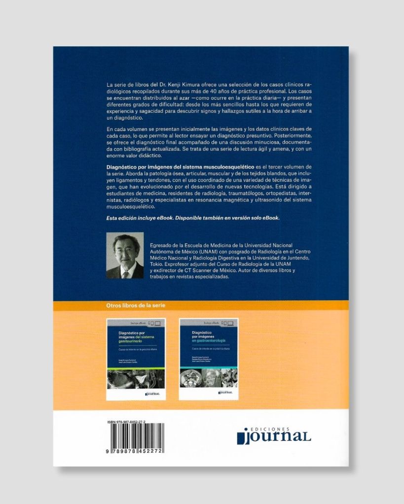 La serie de libros del Dr. Kenji Kimura ofrece una selección de los casos clínicos radiológicos recopilados durante sus más de 40 años de práctica profesional. Los casos se encuentran distribuidos al azar como ocurre en la práctica diaria y presentan diferentes grados de dificultad: desde los más sencillos hasta los que requieren de experiencia y sagacidad para descubrir signos y hallazgos sutiles a la hora de arribar a un diagnóstico. En cada volumen se presentan inicialmente las imágenes y los datos clínicos claves de cada caso, lo que permite al lector ensayar un diagnóstico presuntivo. Posteriormente, se ofrece el diagnóstico final acompañado de una discusión minuciosa, documentada con bibliografía actualizada. Se trata de una serie de lectura ágil y amena, y con un enorme valor didáctico. Diagnóstico por imágenes en el sistema musculoesquelético es el tercer volumen de la serie. Aborda la patología ósea, articular, muscular y de los tejidos blandos, que incluyen ligamentos y tendones, con el uso coordinado de una variedad de técnicas de imagen, que han evolucionado por el desarrollo de nuevas tecnologías. Está dirigido a estudiantes de medicina, residentes de radiología, traumatólogos, ortopedistas, internistas, radiólogos y especialistas en resonancia magnética y ultrasonido del sistema musculoesquelético. Esta edición incluye eBook. Disponible también en versión solo eBook.