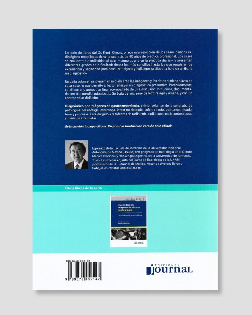 La serie de libros del Dr. Kenji Kimura ofrece una selección de los casos clínicos ra-diológicos recopilados durante sus más de 40 años de práctica profesional. Los casos se encuentran distribuidos al azar como ocurre en la práctica diaria y presentan diferentes grados de dificultad: desde los más sencillos hasta los que requieren de experiencia y sagacidad para descubrir signos y hallazgos sutiles a la hora de arribar a un diagnóstico. En cada volumen se presentan inicialmente las imágenes y los datos clínicos claves de cada caso, lo que permite al lector ensayar un diagnóstico presuntivo. Posteriormente, se ofrece el diagnóstico final acompañado de una discusión minuciosa, documentada con bibliografía actualizada. Se trata de una serie de lectura ágil y amena, y con un enorme valor didáctico. Diagnóstico por imágenes en gastroenterología, primer volumen de la serie, aborda patologías del esófago, estómago, intestino delgado, colon y recto, peritoneo, hígado, bazo y páncreas. Está dirigido a residentes de radiología, radiólogos, gastroenterólogos, y médicos internistas. Esta edición incluye eBook. Disponible también en versión solo eBook.