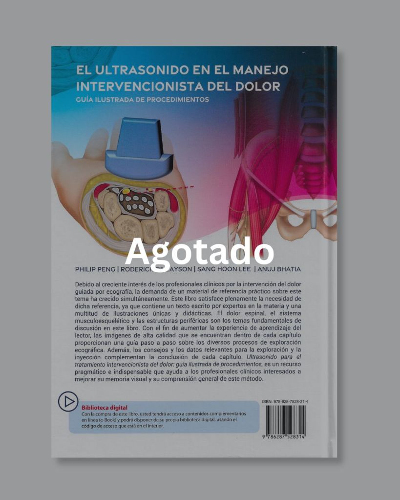 Philip Peng, Roderick Finlayson, San Hoon Lee y Anuj Bhatia son reputados doctores de Canadá y la República de Corea que se han reunido para editar esta obra, que se perfila como una guía ilustrada de procedimientos para comprender con facilidad la anatomía y los procedimientos intervencionistas del dolor. Con la colaboración de anestesiólogos de países como Estados Unidos, Canadá, Bélgica, Brasil, Reino Unido, Colombia, España, Corea y Singapur, este libro reúne en 27 capítulos y más de 300 imágenes procedimientos que pueden ayudar a otros profesionales clínicos al tratamiento del dolor con ecografía. El lector encontrará en esta obra referencias acerca del tratamiento del dolor espinal, el sistema musculoesquelético y las estructuras periféricas; más específicamente, del tratamiento del nervio occipital mayor y menor, el tronco simpático cervical, el nervio supraescapular, los nervios intercostales, los nervios ilioinguinal e ilihipogástrico, el nervio genitofemoral, el nervio pudendo y cluneal inferior, el nervio cutáneo femoral lateral, las raíces nerviosas cervicales. En cada uno de los capítulos se aborda la anatomía, la presentación clínica, la selección de pacientes y las técnicas ecográficas. Además, se le presenta al lector una revisión de los principios básicos y de la física del ultrasonido. Los lectores idóneos de esta obra son anestesiólogos que deseen apoyarse en los procedimientos de ultrasonido para poder aliviar el dolor de sus pacientes, aunque también está perfilada como una herramienta útil para imagenólogos, que pueden ver en los procedimientos de este libro una conceptualización básica de la anatomía y de la lectura de imágenes.